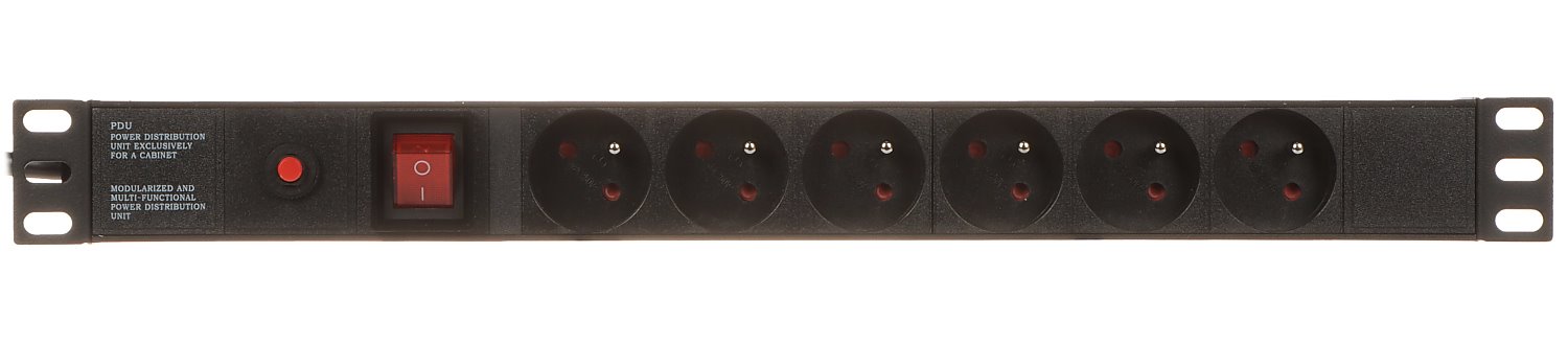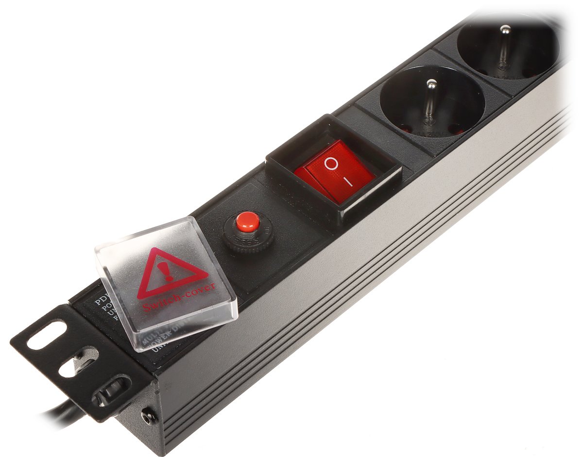 19" rozvodný panel 1U, 6x 230 V, 1,8 m černý, s podsvíceným vypínačem a pojistkou