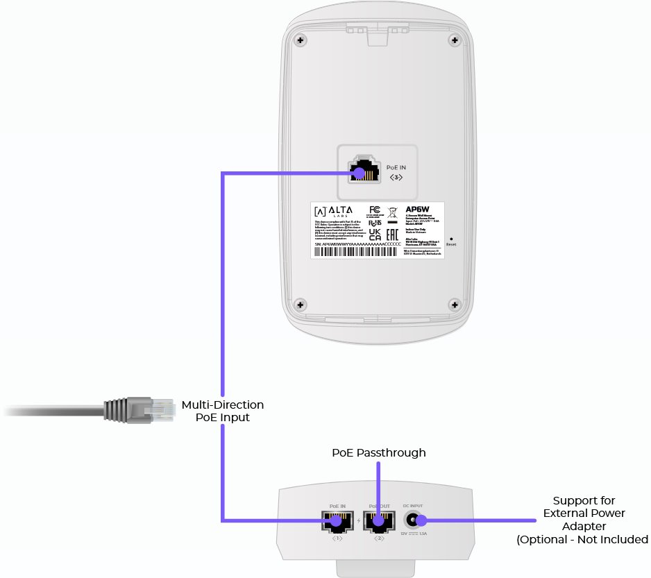 Přístupový bod AP6W od Alta Labs má kompaktní tvar s instalací na zeď a umožňuje bezproblémovou integraci do jakéhokoliv komerčního či rezidenčního prostředí. AP6W může být napájen buď přes ethernet nebo lokálně přes DC jack.