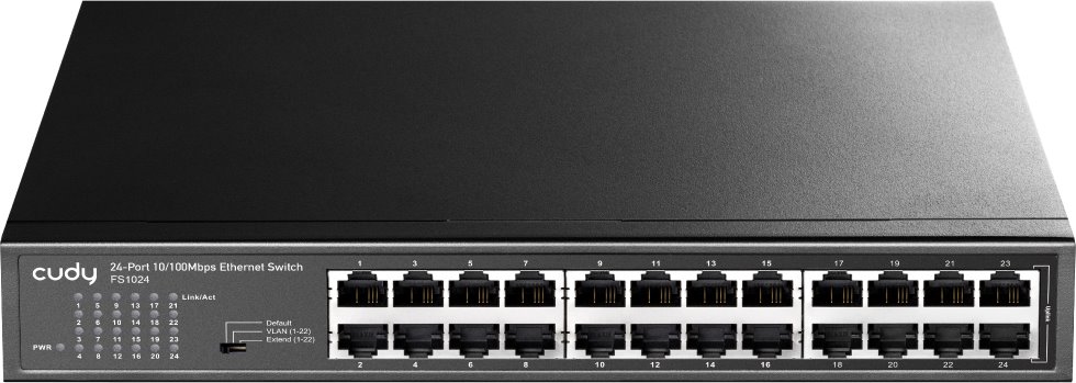Robustní 24portový switch nabízí 24x 10/100 Mbps LAN portů pro stabilní připojení zařízení. Je vhodný pro desktop či 19" rackmount instalaci, což zajišťuje flexibilitu při umístění. Napájení je zajištěno ze sítě (230 V AC). Switch podporuje možnost separace portů nebo prodloužení dosahu až na 250 metrů s linkovou rychlostí 10 Mbps na portech 1 až 22, což je ideální pro rozsáhlejší instalace a dlouhé kabelové trasy.