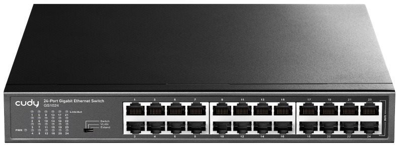 Nemanagovatelný 24portový Gigabitový switch v desktopovém provedení má možnost instalace i do 19" racku. Tento produkt od výrobce Cudy se vyznačuje odolným kovovým šasi, matnou černou barvou, nízkou energetickou spotřebou a jednoduchou instalací plug-and-play. Switch je ideálním řešením do domácího prostředí či menších firem, kde je potřeba stávající síť zrychlit ze 100 Mbps na Gigabit nebo rozšířit a připojit k ní více zařízení, jako například stolní počítače, tiskárny, IP kamery, chytré televize, herní konzole a jiné.