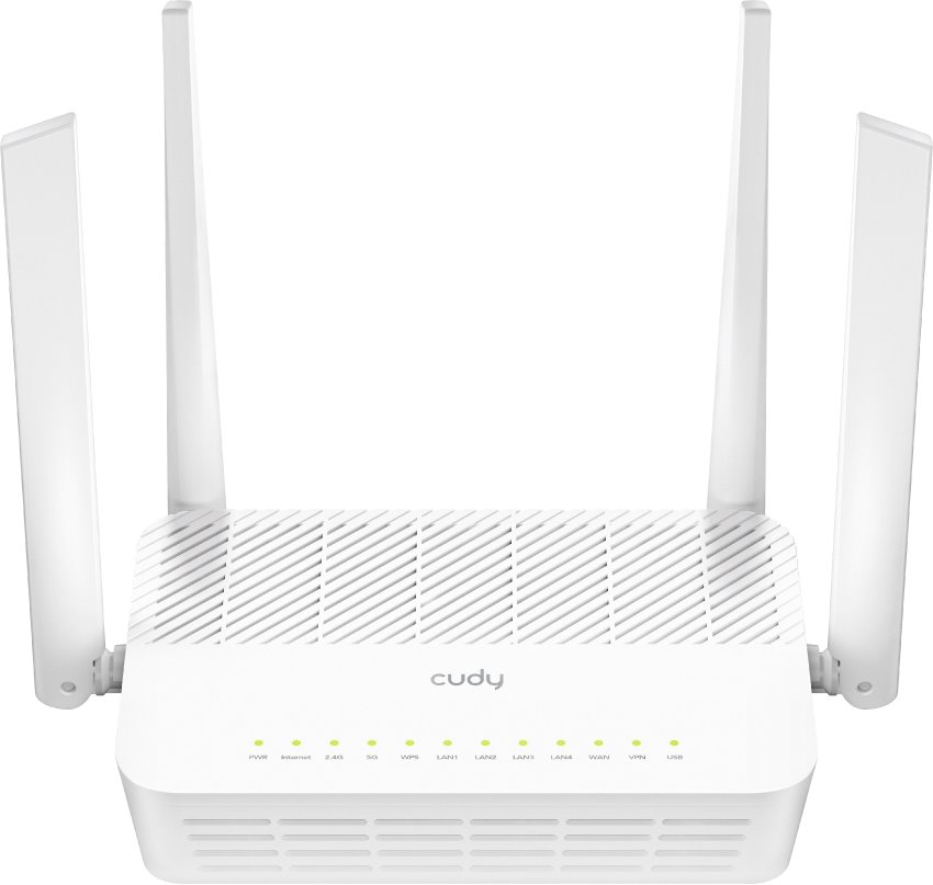 Cudy WR3000H Wi-Fi 6 Router přináší výkonné připojení s 4x 10/100/1000 Mbps LAN a 1x 100/1000/2500 Mbps WAN portem. S Dual Band 2.4 GHz a 5 GHz Wi-Fi 6, podporou standardů 802.11a/b/g/n/ac/ax a modulační rychlostí Wi-Fi až 574 Mbps + 2402 Mbps je ideální pro náročné aplikace. S 4 fixními anténami a moderním designem se snadno integruje do prostředí. Využívá bezdrátové technologie jako OFDMA, Beamforming a MU-MIMO pro optimální výkon. Podporuje VPN protokoly (ZeroTier, Wireguard, OpenVPN, L2TP, PPTP a IPSec), vzdálenou správu (TR-069, GenieACS, OpenACS, Web management) a různé operační módy (AP Router, Access Point, Wisp, Range Extender). S podporou IPv4 a IPv6 poskytuje širokou flexibilitu a zabezpečení.