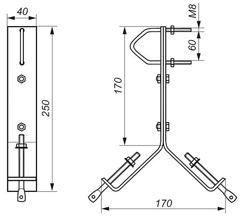 Držák stožárů/antén na komín s drátovým úchytem, bez nutnosti vrtat do konstrukce komínu