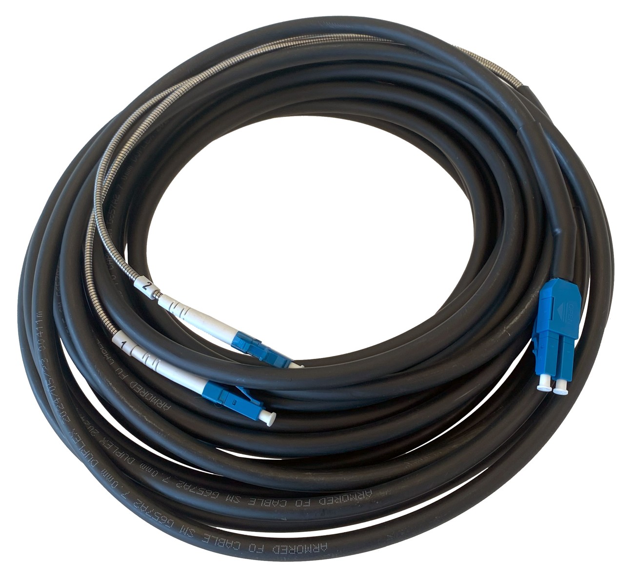 Masterlan optický venkovní patch cord vhodný pro venkovní instalace, například na propojení bezdrátového pojítka, které má optický port a datového rozvaděče. Plášť kabelu je vyroben z kvalitního materiálu odolnému proti UV záření.. Uvnitř kabelu jsou dva aramidové tahové prvky spolu se dvěma SM vlákny, které jsou po celé délce opatřeny kovovými flexibilními krky, aby nedošlo k jejich poškození při méně šetrné manipulaci. Na jedné straně je PE ochrana dotažena až ke konektoru a koncovka nelze rozdělit. Na opačné straně je konec bez PE ochrany a koncovku je možné rozdělit, aby byla zaručena vyší flexibilita. Použité jsou singlemode 9/125 vlákna typu G.657.A2 a jsou zakončeny dvěma LC konektory na obou stranách s UPC broušením.