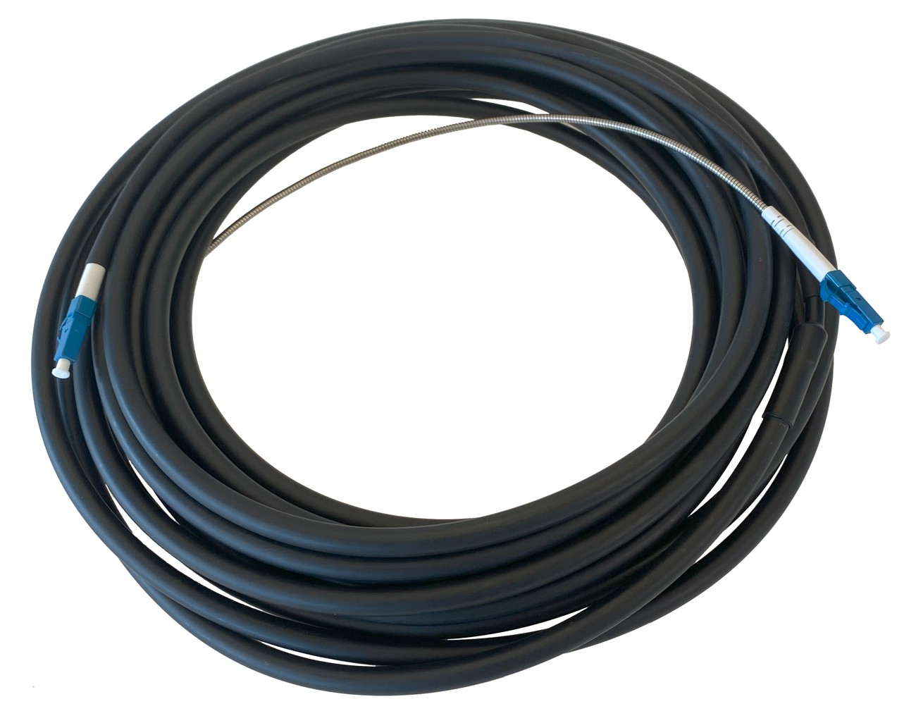 Masterlan optický venkovní patch cord vhodný pro venkovní instalace, například na propojení bezdrátového pojítka, které má optický port a datového rozvaděče. Plášť kabelu je vyroben z kvalitního materiálu odolnému proti UV záření. Uvnitř kabelu jsou dva aramidové tahové prvky spolu s jedním SM vláknem, které je po celé délce opatřeno kovovým flexibilním krkem, aby nedošlo k jeho poškození při méně šetrné manipulaci. Na jedné straně je PE ochrana dotažena až ke konektoru a na opačné straně je konec bez PE, aby byla zaručena vyší flexibilita. Použité je singlemode 9/125 vlákno typu G.657.A2 a je zakončeno jedním LC konektorem na obou stranách s UPC broušením.