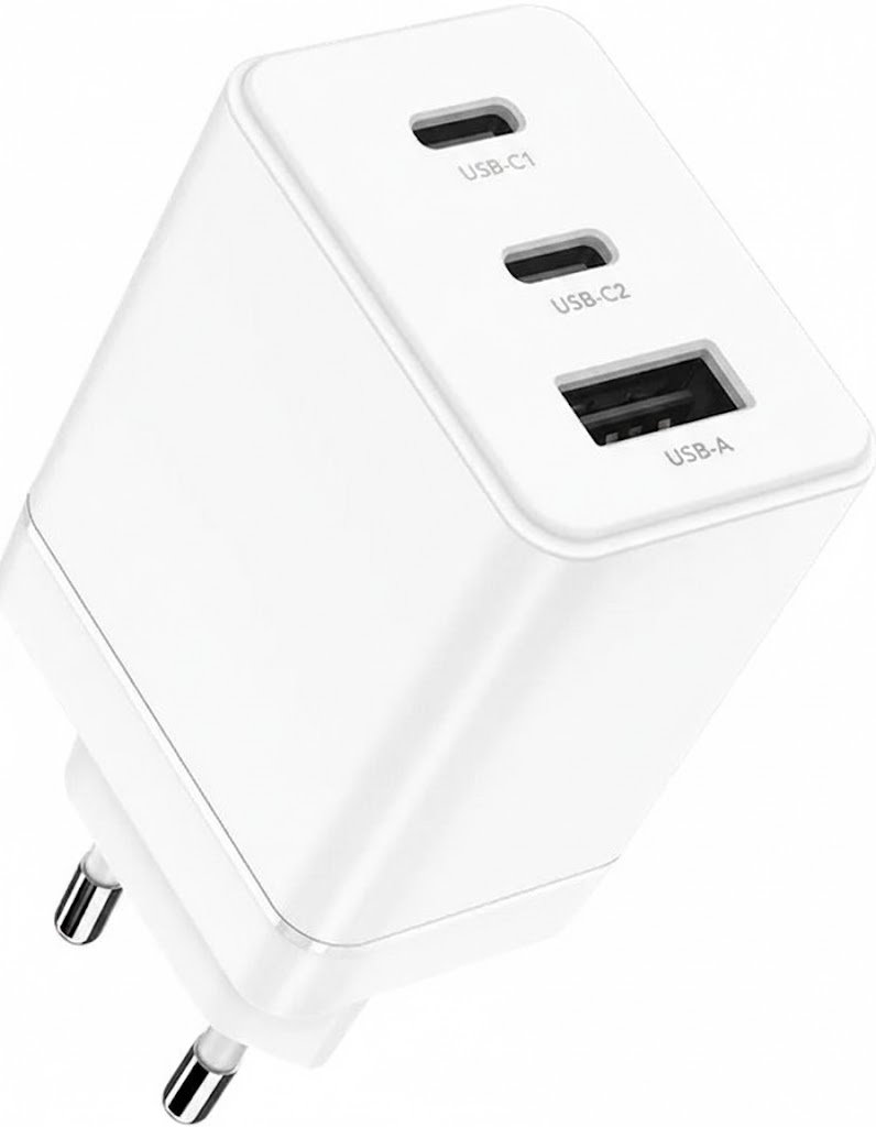 Tato síťová nabíječka od výrobce Cudy je ideální pro nabíjení notebooků, tabletů a telefonů. Disponuje dvěma USB-C konektory s celkovým výkonem 67 W a jedním USB-A konektorem s výkonem 18 W, přičemž maximální