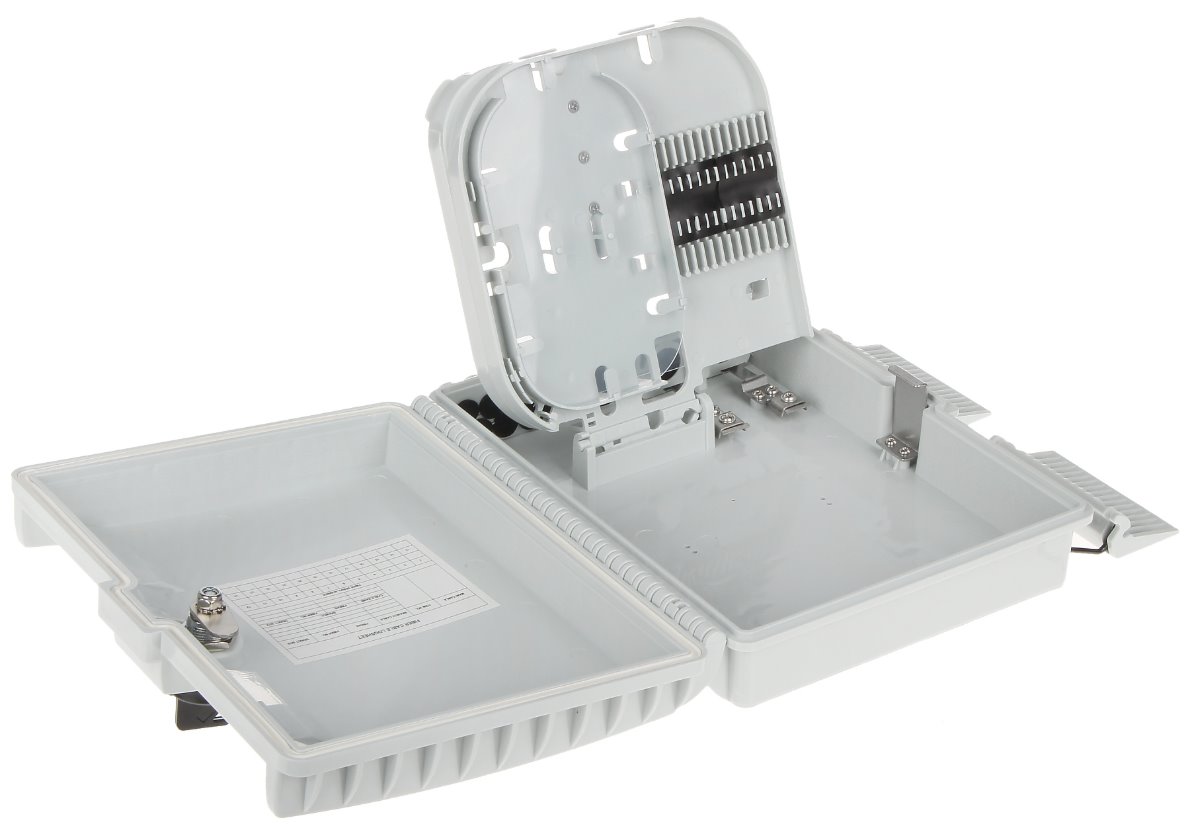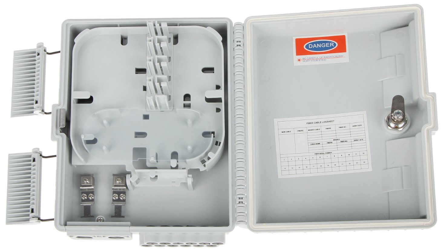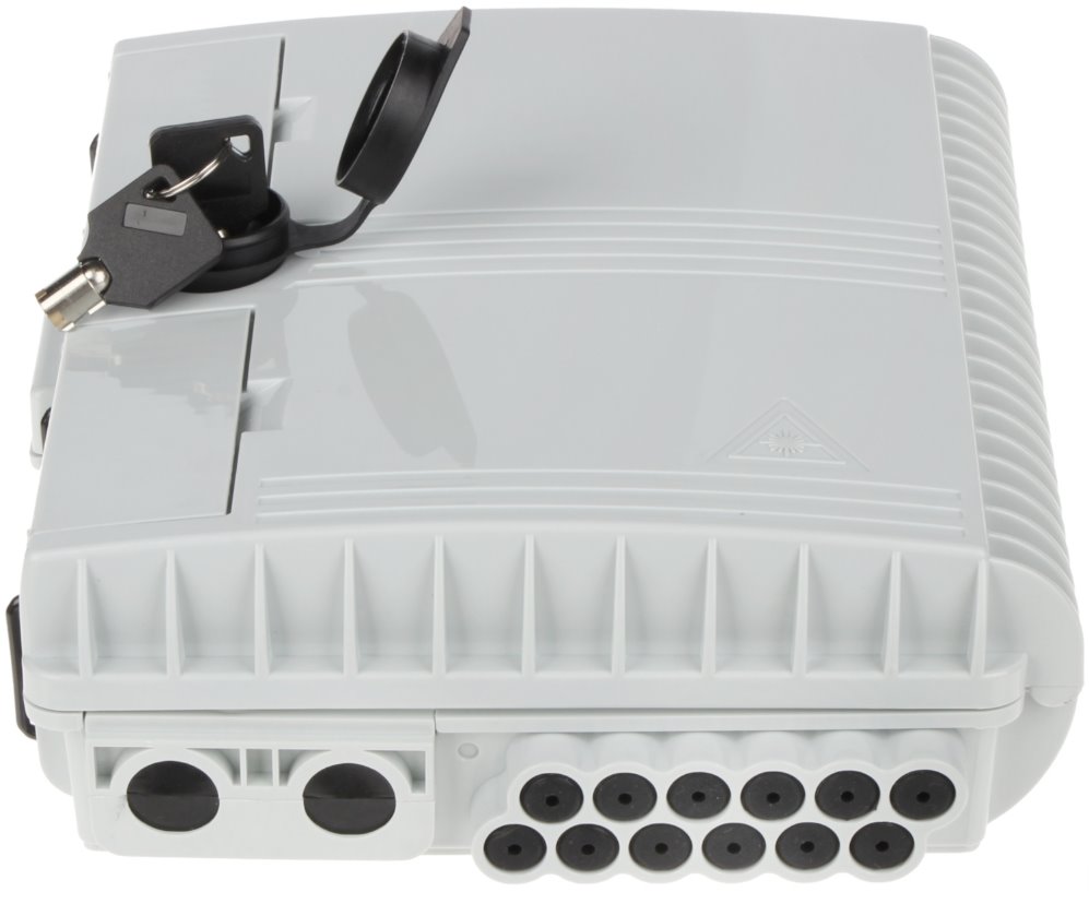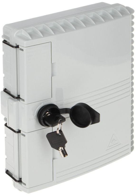 Může sloužit jako FTTH box, nebo jako spojka pro 2 optické kabely. Zamykání klíčem.