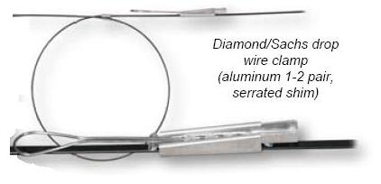Kotva/držák/úchytka pro samonosný optický kabel OFS Mini LT Drop. Uchycení je dielektrické (není vodivý kontakt mezi kabelem a úchytem kotvy).