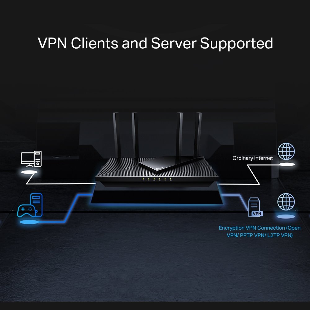 Rychlejší dvoupásmová AX3000 WiFi: Až 3,0 Gbps (2402 Mbps + 574 Mbps) WiFi pro rychlejší procházení, streamování a stahování, to vše současně. 2,5G multigigabitový port: 1 × 2,5 Gb/s WAN/LAN port + 1 × 1 Gb/s WAN/LAN port + 3 × gigabitové LAN porty + 1 × USB 3.0 port zaručují maximální flexibilitu a zvýšenou propustnost. Maximalizované pokrytí: Čtyři antény s vysokým ziskem vybavené funkcí Beamforming zajišťují rozsáhlé pokrytí. Připojuje více zařízení: Technologie OFDMA zvyšuje kapacitu 4krát, aby umožnila současný přenos do více zařízení.‡ Podpora klienta VPN: Umožněte zařízením ve vaší domácí síti přistupovat ke vzdáleným serverům VPN, aniž byste museli do všech zařízení instalovat software VPN. TP-Link HomeShield: Vylepšené zabezpečení chrání před nejnovějšími kybernetickými hrozbami.? Podpora TP-Link OneMesh: Flexibilně vytvořte celou domácí WiFi s Archer AX55 přidáním extenderu s podporou OneMesh. Kompatibilní s Alexa: Ovládejte svůj router pomocí hlasových příkazů a udělejte si život chytřejší a jednodušší s Amazon Alexa.