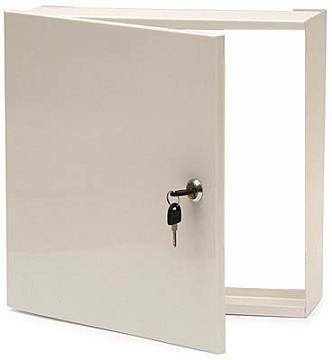 Rozvodná skříň 400x400x140, plechové dveře, uzamykatelná, bílá