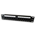10" Patch panel, 1U, Cat 5e, 12 konektorů RJ45 nestíněný - Patch panel kompaktní konstrukce, s 12ti nestíněnými konektory RJ45, všech 8 pinu přiřazeno - Způsob zapojení: způsob zap. LSA (žádné odizol. vodičů, bez šroubu, bez pájení), průměr 0,4 – 0,65