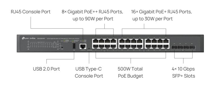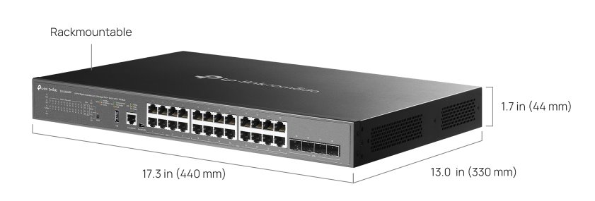 Omada 24portový gigabitový stohovatelný switch Lite L3 se správou PoE++ a 4× 10G sloty