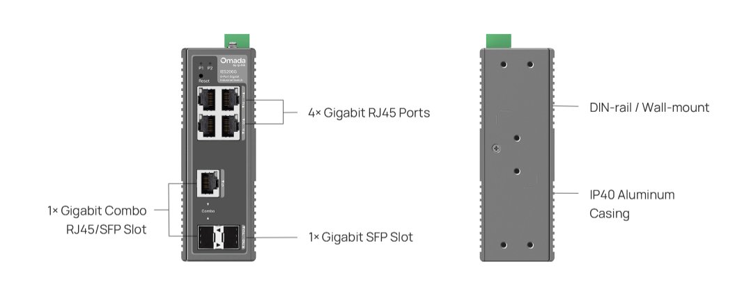 Switch IES206G je navržený pro náročné průmyslové prostředí. Díky kovovému šasi, krytí IP40 a širokému rozsahu provozních teplot obstojí i v extrémních podmínkách. Kromě fyzické odolnosti nabídne i vysokou flexibilitu v síťovém řízení – snadno ho začleníte do platformy Omada SDN, kde získáte kompletní dohled a správu přes cloud. Nechybí ani funkce jako VLAN, QoS nebo podpora STP/RSTP, které zvyšují stabilitu a efektivitu celé sítě.