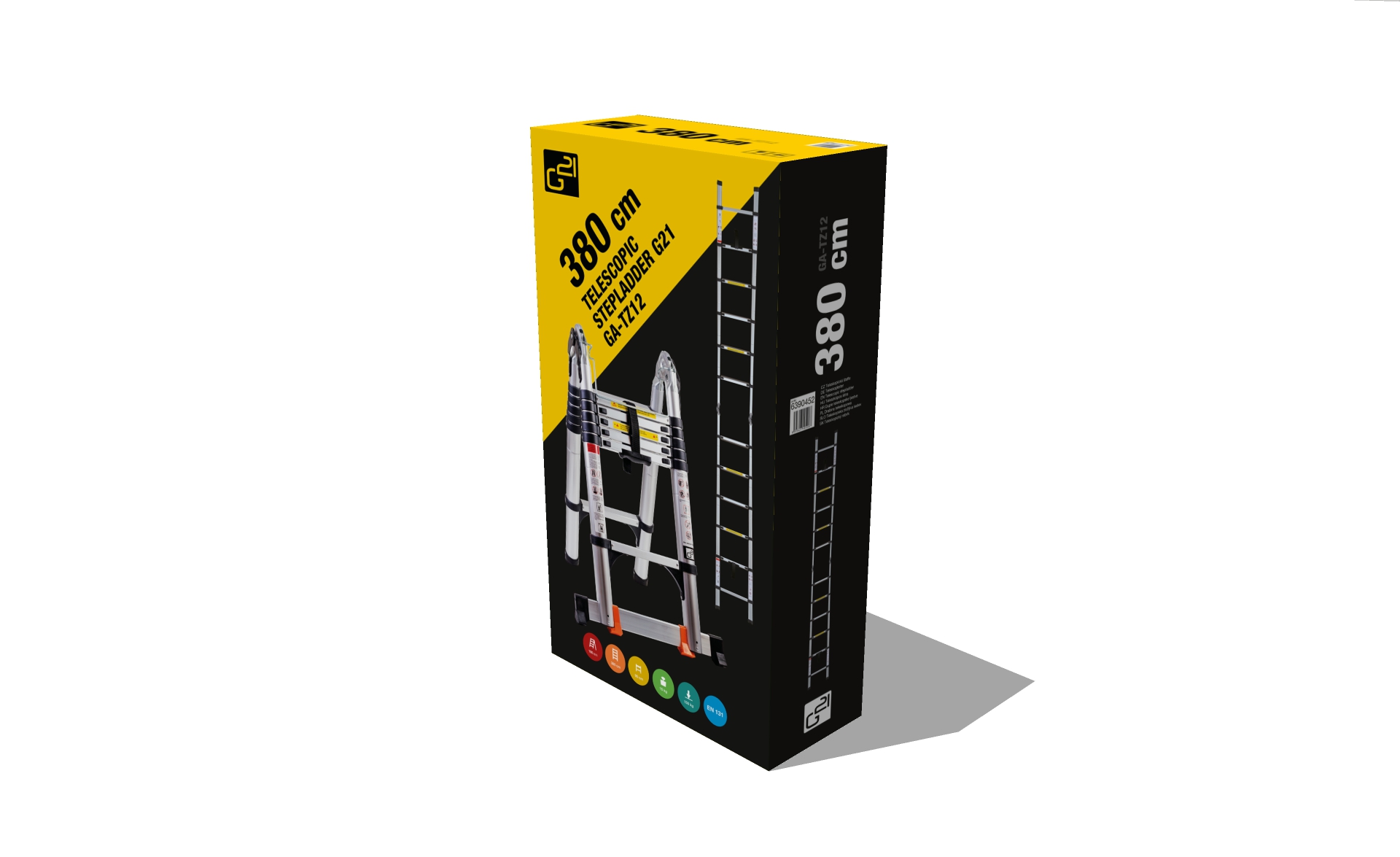 Teleskopický žebřík G21 GA-TZ12-3,8M původně vyvinutý pro profesionály, je špičkový model, který se vyznačuje dostatečně pevnou a odolnou konstrukcí, díky systému duralových profilů. Na jeho konstrukci byly využity lehké hliníkové materiály, které snižují jeho celkovou hmotnost a zároveň zabezpečují složení žebříku do minimální úložné velikosti.
