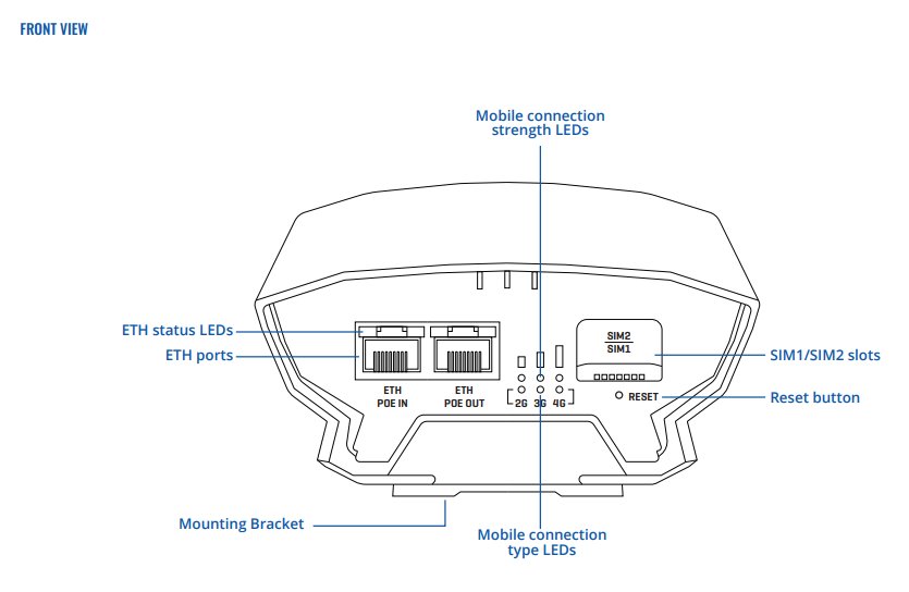 Venkovní router OTD140 je vybaven odolným plastovým krytem s ochranou IP55 a integrovaným montážním držákem, díky čemuž se zařízení snadno nasazuje a je schopno odolat venkovním podmínkám. Kromě toho je tento venkovní router vybaven konektivitou LTE Cat 4, kompatibilitou s RMS pro umožnění vzdálené správy a dvěma ethernetovými porty PoE-in/out.