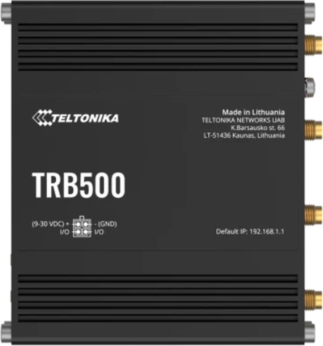 5G brána Teltonika TRB500 patří mezi kompaktní a energeticky účinná zařízení s rozhraním Gigabit Ethernet a dvěma konfigurovatelnými I/O. Zařízení poskytuje rychlosti sítě 5G s ultra nízkou latencí pro kritické infrastrukturní prvky a vysokou datovou propustnost. Tu zajišťují 4 přídavné externí antény (součástí balení), které umožňují použití v konfiguraci 4×4 MIMO.