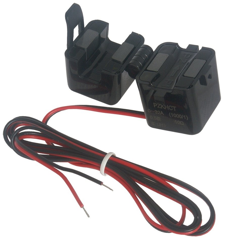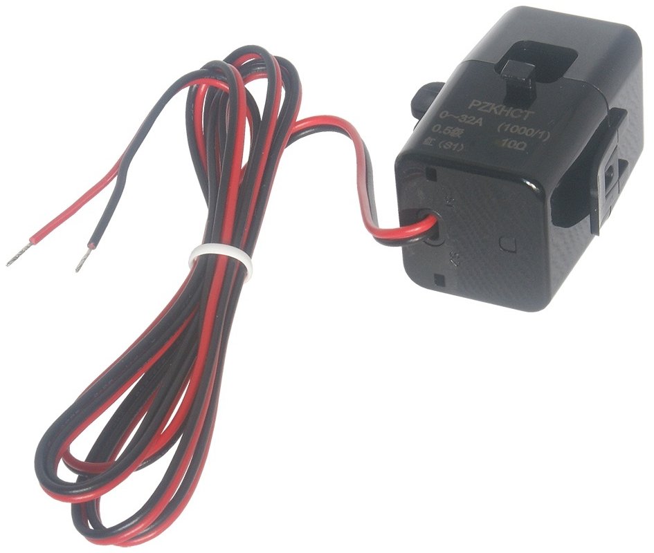 Miniaturní rozevírací proudový transformátor určený pro přesné měření střídavého proudu v rozsahu 0–32 A.