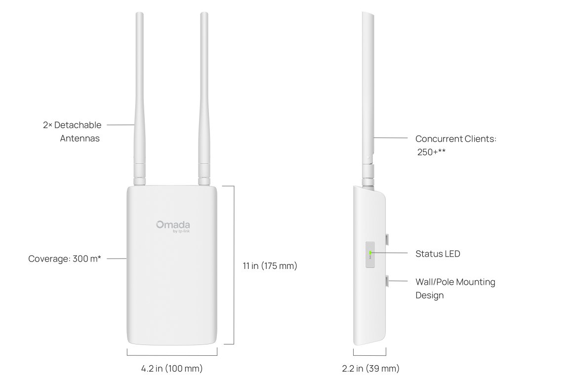 Přístupový bod nabízí rychlost až 1201 Mb/s v pásmu 5 GHz a 574 Mb/s v pásmu 2,4 GHz. Technologie OFDMA a MU-MIMO zajišťují stabilní připojení i při vyšším počtu současně připojených zařízení. Dvě externí antény s vysokým ziskem poskytují všesměrové pokrytí až 300 m v pásmu 5 GHz a až 200 m v pásmu 2,4 GHz.
