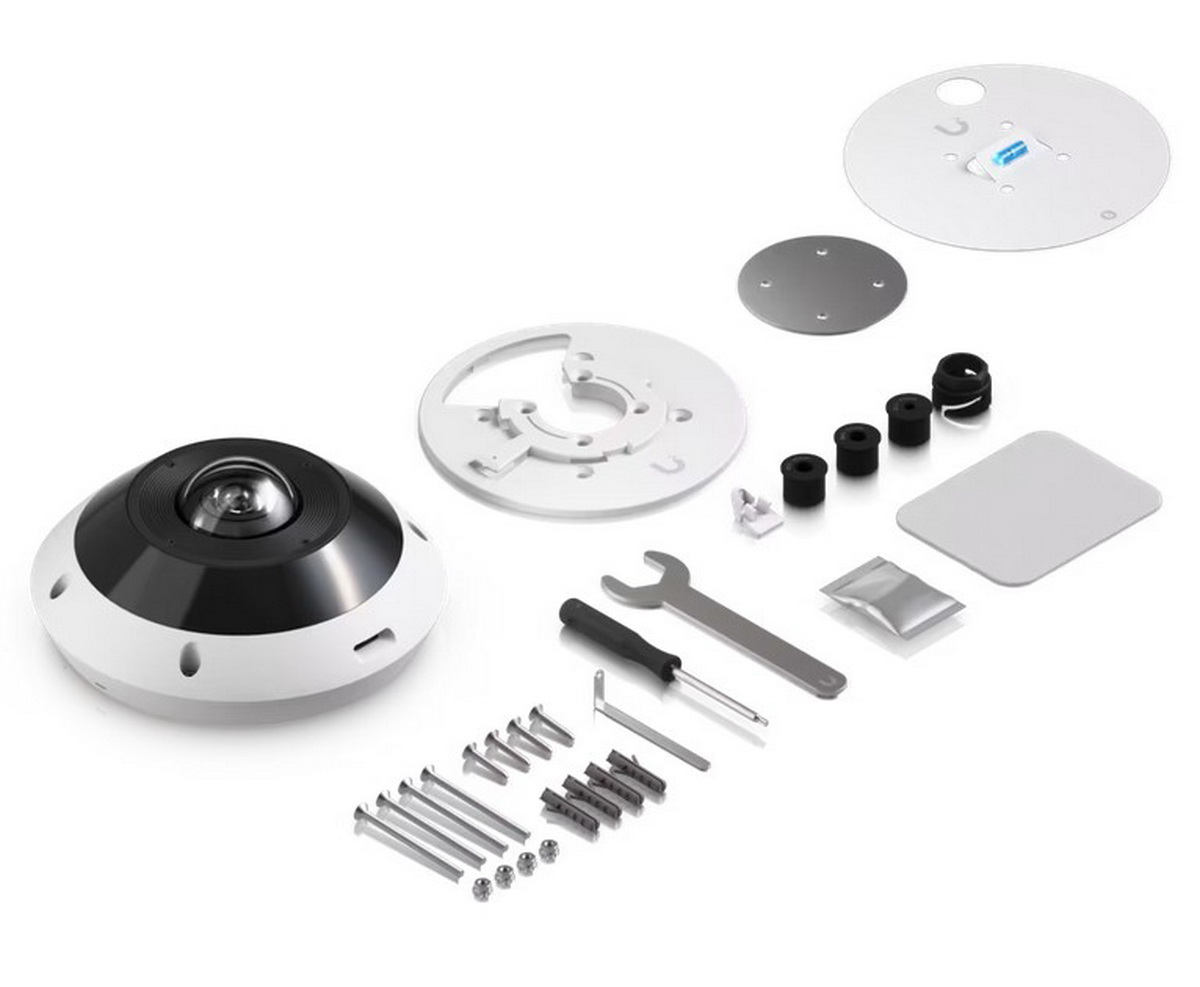 Ubiquiti G6 Pro 360 je venkovní panoramatická IP kamera z řady UniFi Protect. Je vybavena 12MP snímačem s rozlišením 3504 x 3504px při 24fps, objektivem typu rybí oko se záběrem 360° a inteligentním IR přísvitem na vzdálenost až 15 m se 4 ovladatelnými zónami. Kamera je osazena 10/100 Mbps ethernetovým portem, který slouží zároveň k napájení pomocí PoE+ 802.3at nebo pasivního PoE v rozmezí 37-57 V DC. Maximální spotřeba kamery je 7,14 W. Součástí výbavy jsou také mikrofony, reproduktor pro obousměrnou komunikaci a slot pro paměťovou kartu.