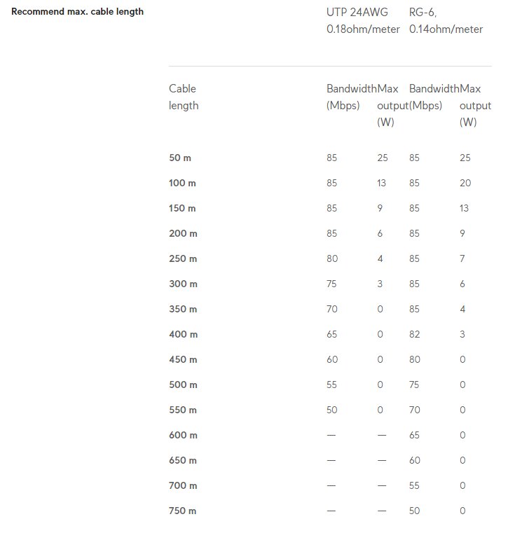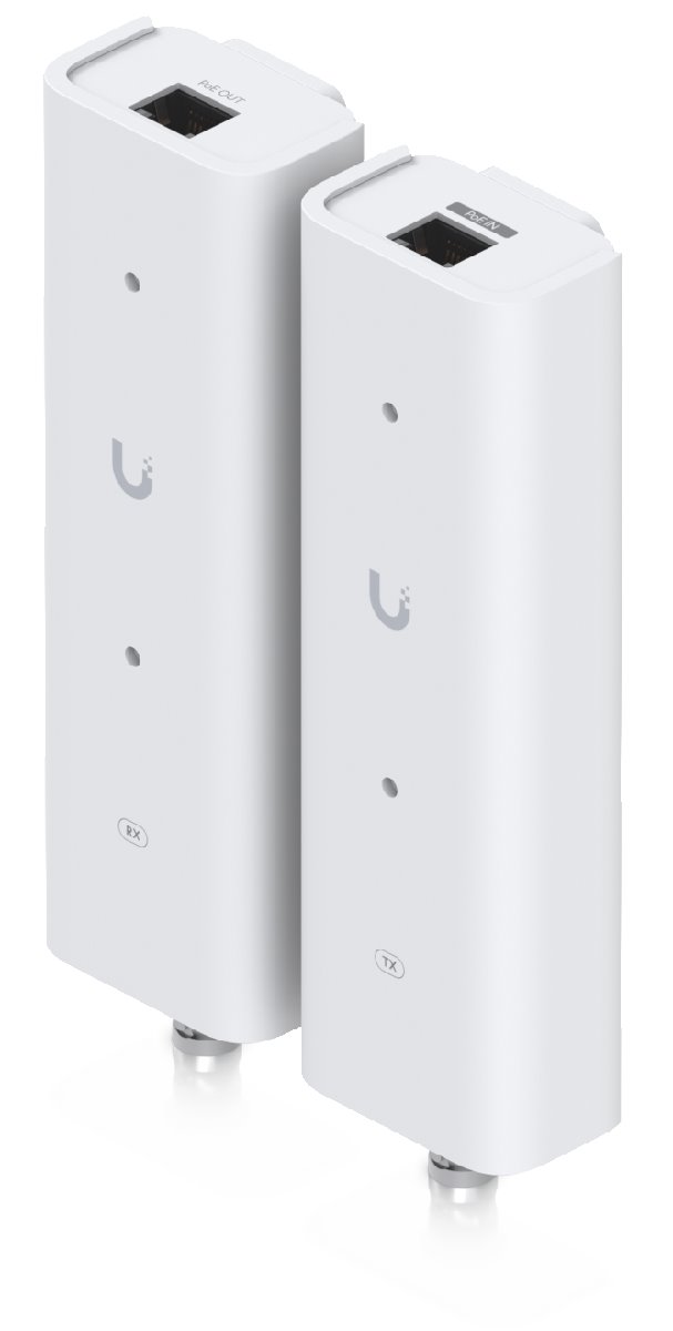 Pár extenderů, díyk kterým můžete rozšířit PoE přes kroucenou dvoulinku či coaxiální kabel. Toto řešení najde uplatnění všude tam, kde nelze nahradit původní kabelové vedení. Každý z extenderů disponuje 1x 10/100 Mbit ETH portem a dvoupinovým konektorem, který lze osadit svorkovnicí nebo adaptérem pro použití s coaxiálním kabelem. Pro napájení extenderů poslouží na vstupu PoE-IN port PoE++ (50V DC, 1,2A) a na opačné straně dostaneme výstup PoE-OUT PoE+ (48V DC, 0,6A). Přenos po dvoulince nebo coaxilaním kabelu je zprostředkován Homeplug AV standardem. Vlastní spotřeba extenderů je 3W.