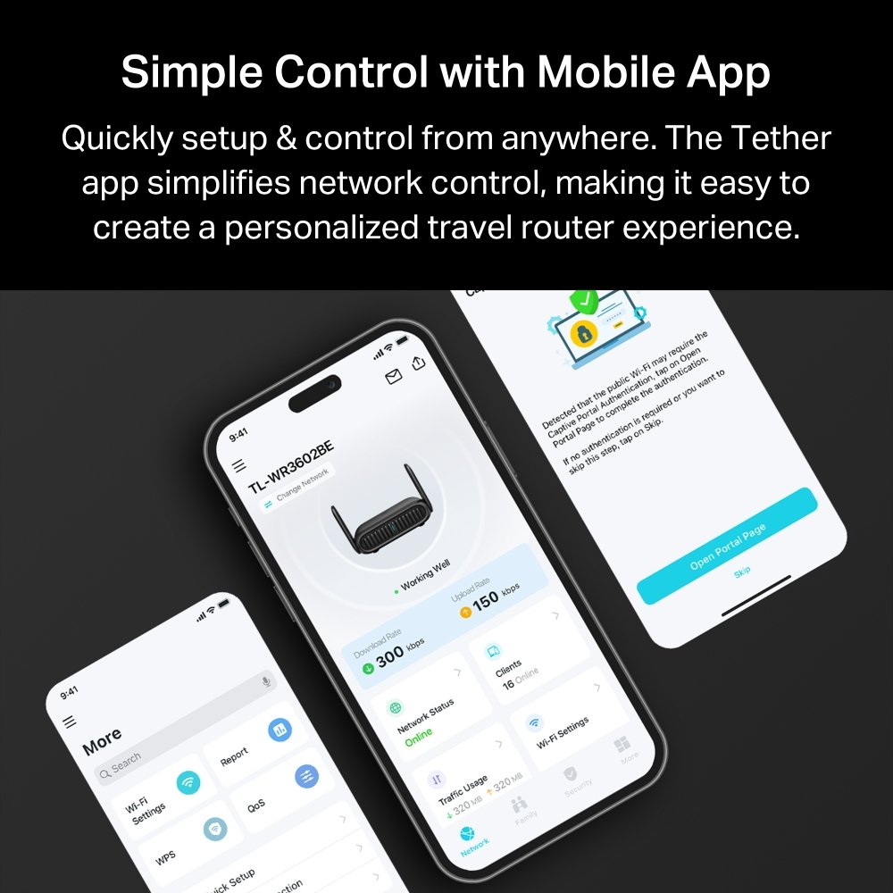 Díky 7 provozním režimům využijete router jako hotspot v hotelu, přístupový bod doma nebo rozšíření signálu na chalupě. Port USB 3.0 umožňuje připojení USB disku nebo modemu a sdílení obsahu i internetu. Funkce Captive Portal usnadní přihlášení hostů k Wi-Fi síti.