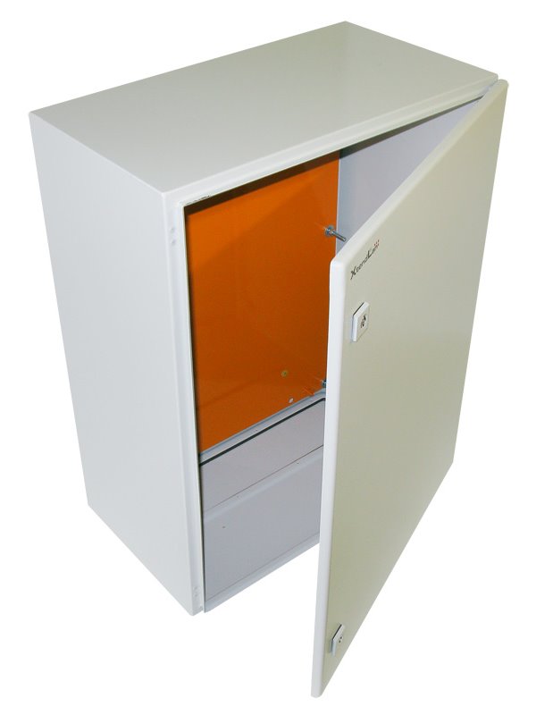 Rozvaděč je vyroben z válcované oceli o tloušťce 1,5 mm.