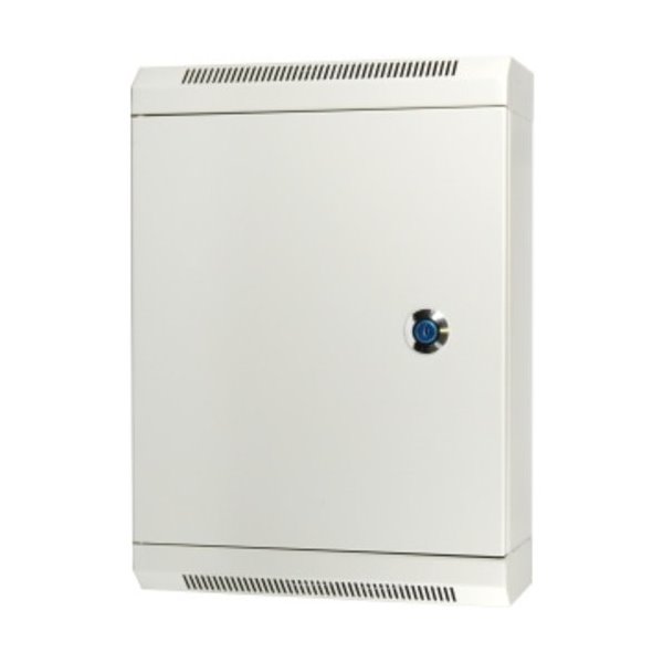 Kovový rozvaděč pro vnitřní instalace s DIN lištou. Rozvaděč je opatřen kovovým zámkem a ventilačními otvory.